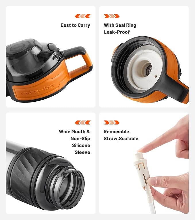 - EASY TO CLEAN & USER FRIENDLY: All parts of this water bottle are easy to remove for cleaning easily. The silicone non-slip cover provides a solid grip and sweat proof for cold and warm water. This water bottle for school can be reusable. Perfect for outdoors activities, like camping, driving, beach, workout, fitness, yoga, running, traveling, hiking, tennis, cycling or riding your bike.
