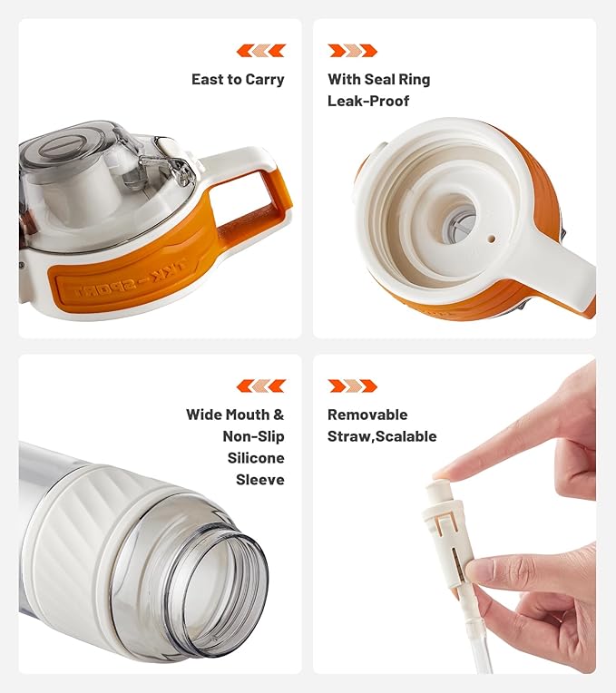 - EASY TO CLEAN & USER FRIENDLY: All parts of this water bottle are easy to remove for cleaning easily. The silicone non-slip cover provides a solid grip and sweat proof for cold and warm water. This water bottle for school can be reusable. Perfect for outdoors activities, like camping, driving, beach, workout, fitness, yoga, running, traveling, hiking, tennis, cycling or riding your bike.