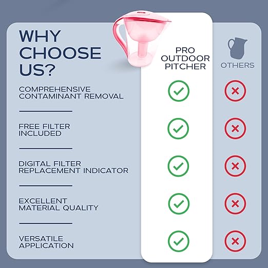 - PREMIUM-INSPIRED FEATURES: Crafted with premium technology, this large water pitcher with filter guarantees top-tier water filtration, similar to the quality you'd expect from your favorite water filter pitcher.