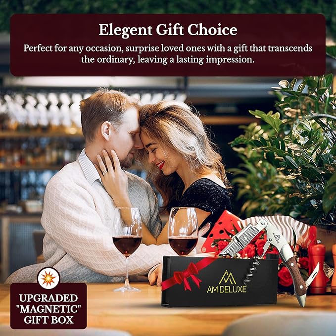 • ELEGANT GIFT CHOICE - Elevate celebrations with gifting our Premium AM DELUXE Waiter's Corkscrew. Timeless craftsmanship meets practical elegance for a refined uncorking experience. Perfect for any occasion, surprise loved ones with a gift that transcends the ordinary, leaving a lasting impression.