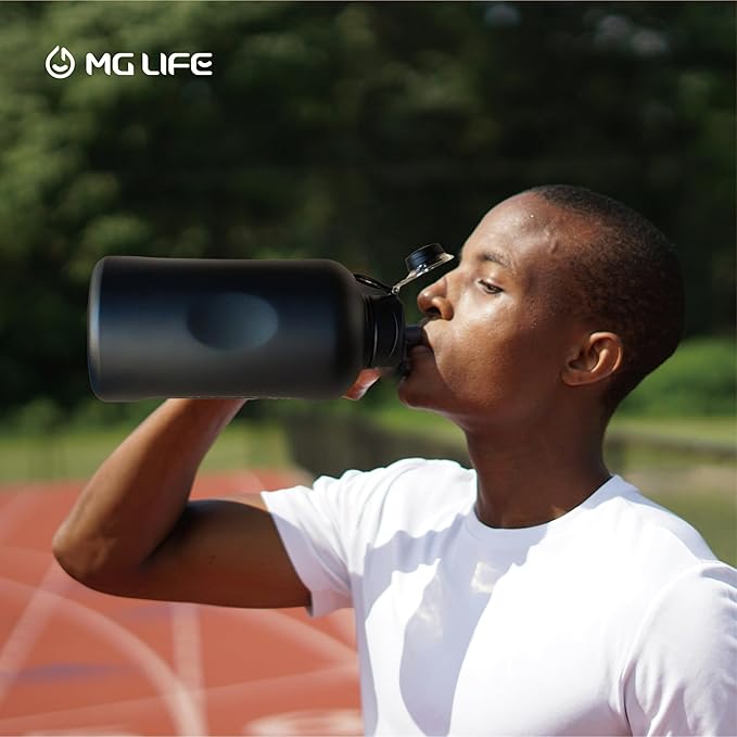 - Insulated Bottle: Made of 18/8 Food-grade Stainless Steel that’s non-toxic, BPA-free. these half gallon water bottle keeps beverage's hot for up to 24 hours and cold 48 hours. 2 designs help you get water easier: 2 in 1 lid and big holder.