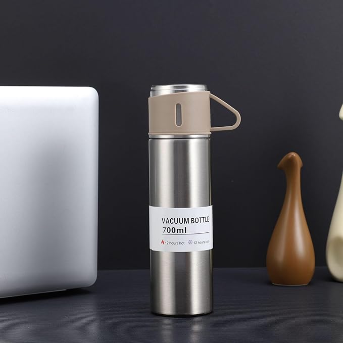 Vacuum Insulated Bottle with Cup 700ml/24oz Insulated Stainless Steel 304 Water Bottle with Sports and Travel Stainless steel Cffee Bottles (Steel set 24Oz)