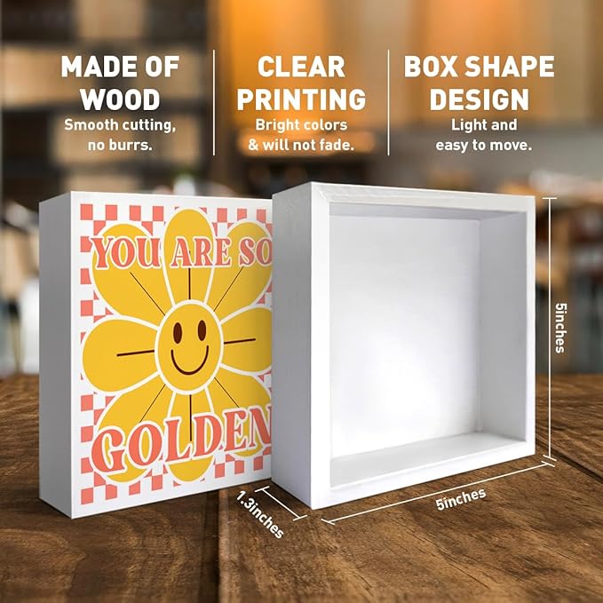 - DISPLAY: This decorative wood box sign does not require any accessories and can be placed smoothly on a flat surface, making it easy to blend into any zone whether you want to display it on a table, shelf or hang on the wall.