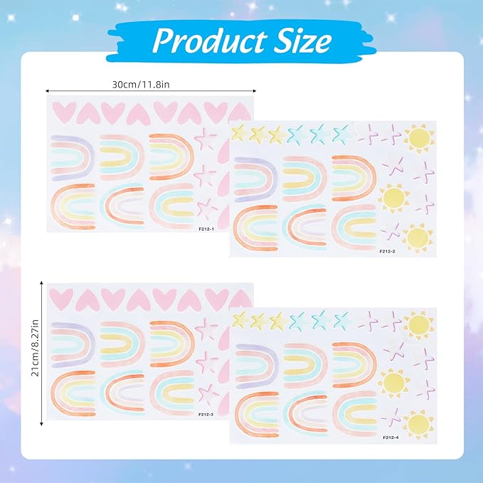 - GLOW RAINBOW WALL DECALS: This set includes 4 small luminous rainbow wall decals. With a variety of vivid and lovely super bright stickers, they can create a warm and dreamy atmosphere in your room, soothing to sleep.
