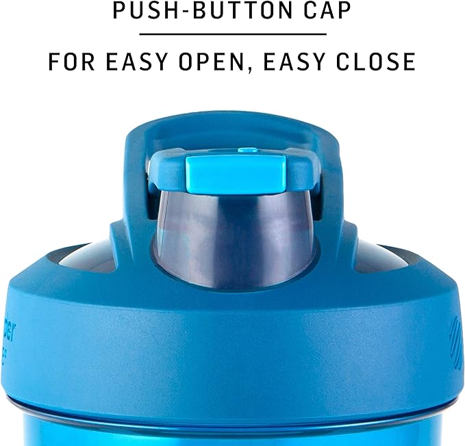 - Product 1: Authentic BlenderBottle, for mixing protein shakes and smoothies, features an easy-open/easy-close push-button flip cap with a sliding lock to prevent accidental opening