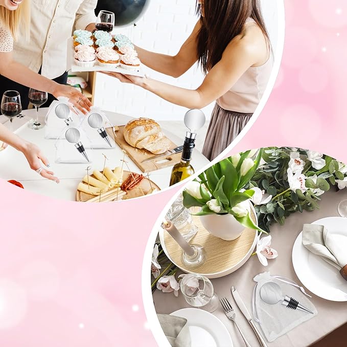 24 Sets Wine Stopper for Wine Bottles Wedding Wine Stopper Champagne Bottle Stoppers Beverage Bottle Stoppers with White Sheer Organza Bags Wedding Party Favor for Guests (Silver)