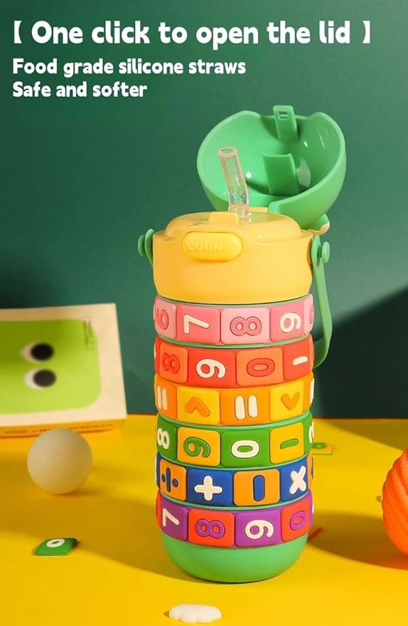- MATH-INFUSED THERMOS: This 14oz kids water bottle offers an interactive learning experience by incorporating addition, subtraction, multiplication and division. With a smart rotation feature, children can practice math while enjoying their drinks.