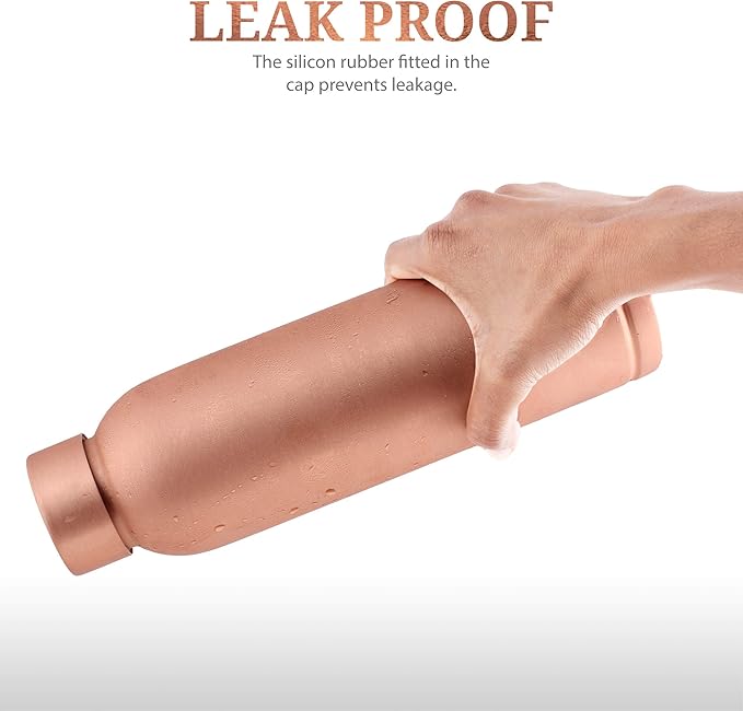 - Leak-proof design : This copper water bottle features a leak-proof design that ensures your water stays inside the bottle and doesn't leak out. The lid is securely attached to the bottle, so you can carry it with you wherever you go without worrying about spills or leaks.