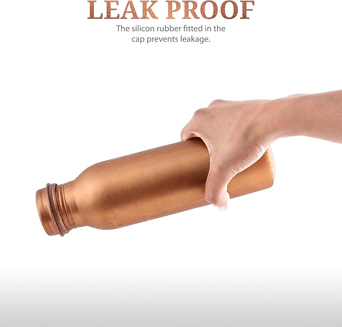 - Leak-proof design : This copper water bottle features a leak-proof design that ensures your water stays inside the bottle and doesn't leak out. The lid is securely attached to the bottle, so you can carry it with you wherever you go without worrying about spills or leaks.