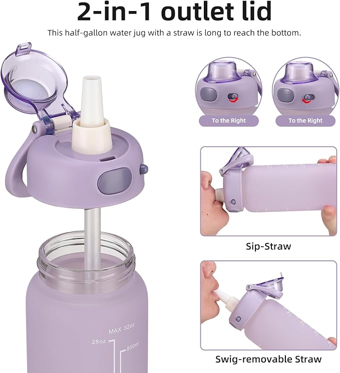 - Leakproof & Functional Design - Simply open with one hand by clicking the button, The flip-top lid is designed with a secure lock, making it dust-proof and leak-proof. The water bottle with a straw makes you drink more easily. The wide mouth is easy to fit ice cubes, and also easy to clean. (bonus cleaning brush)