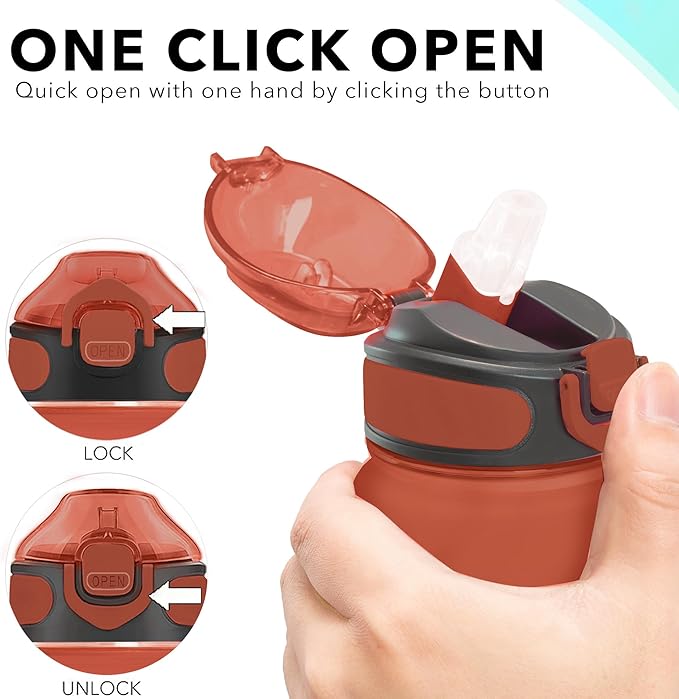 - 【Humanized Design】Open with one hand by clicking the button to access water. Highly suitable for boys and girls, and all ages. The flip-top lid is used a secure lock, making it dust-free and leak-proof. The frosted texture of the water bottle allows you to hold it better.