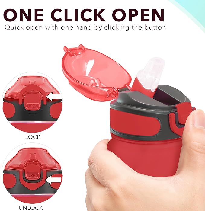 - 【Humanized Design】Open with one hand by clicking the button to access water. Highly suitable for boys and girls, and all ages. The flip-top lid is used a secure lock, making it dust-free and leak-proof. The frosted texture of the water bottle allows you to hold it better.