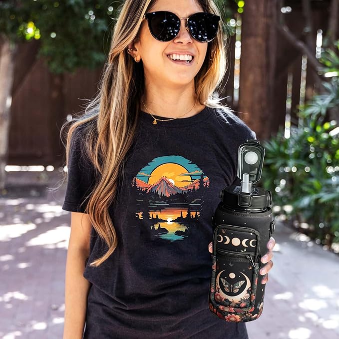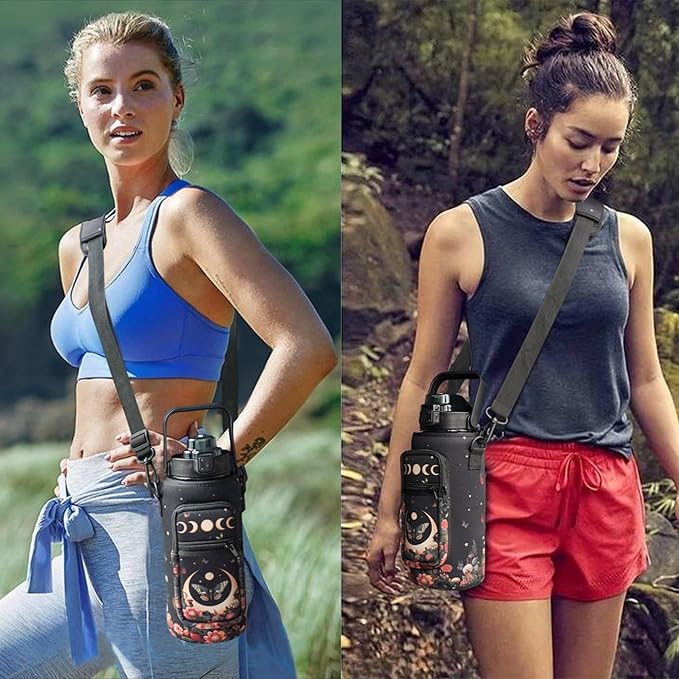 - [Moon Phases and Stars Water Jug]: Goth moon water bottle, Combines bohemian and gothic styles, The pattern is the change of the moon phase, from half moon to full moon. It can be moon decor, moon gifts, Halloween witch decor, moon and stars decor, boho decor, goth witch stuff, accessories of moon costume.