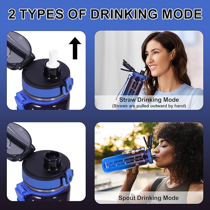 - Motivational Time Mark: The water bottle is designed with time markers and motivational maxims to help you drink enough water throughout the day. Our leak-proof water bottles provide you with more freedom and comfort when drinking water!