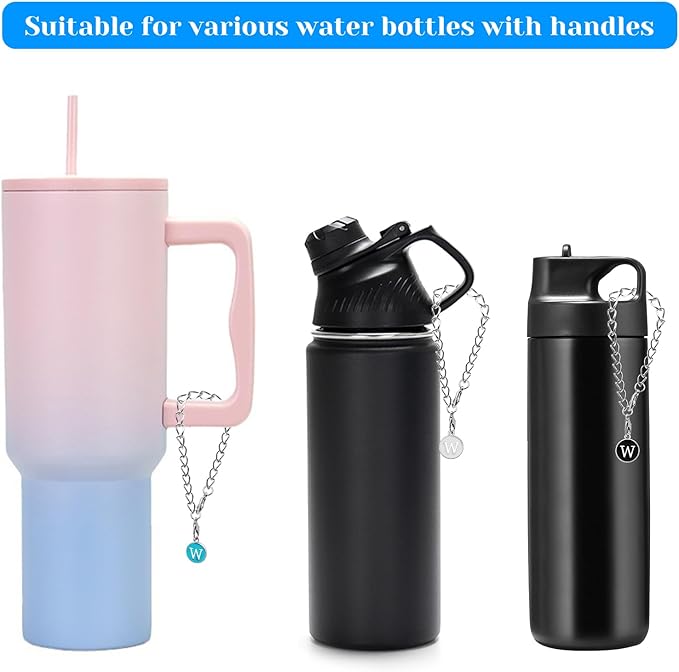 - [High Quality & Adjustable Size] These letter charms and chains are made of high-quality alloy material, not easy to rust, It can be used for a long time. These initial charm accessories are 10cm/4 inches long, with a refined lobster clasp. Just use the lobster clasp to hang the letter chain on the handle of the non-tumbler. It can be easily hung on or removed from the handle. It can also be adjusted in size to fit different cups by snapping the chain ring.