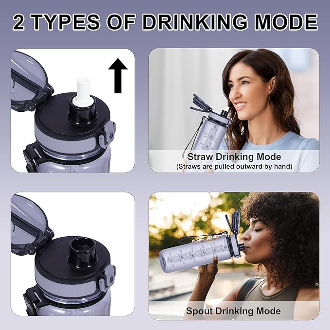 - Motivational Time Mark: The water bottle is designed with time markers and motivational maxims to help you drink enough water throughout the day. Our leak-proof water bottles provide you with more freedom and comfort when drinking water!
