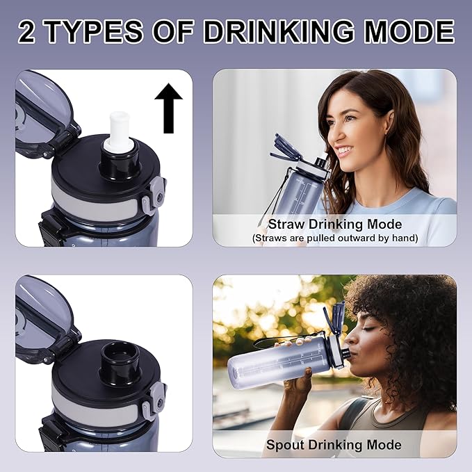 - Motivational Time Mark: The water bottle is designed with time markers and motivational maxims to help you drink enough water throughout the day. Our leak-proof water bottles provide you with more freedom and comfort when drinking water!