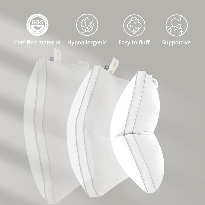 - Certified Safety and Sustainability: Rest assured knowing that our Globon bedding is committed to customer satisfaction since 1988. Our down feather pillows are authorized by Responsible Down Standard (RDS) and OEKO-Tex Standard 100, making them high clean, cruelty-free, and environmentally friendly.