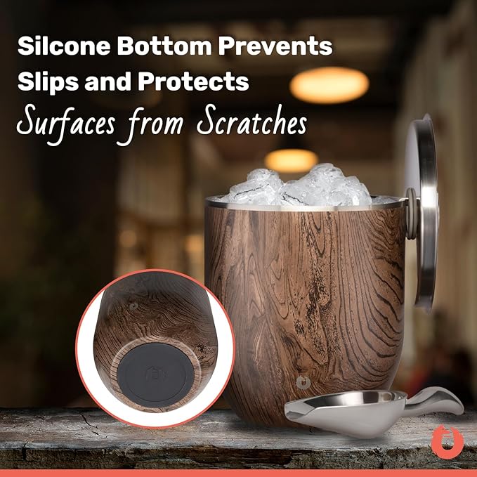 - Timeless Style: The last ice bucket you’ll ever need, and frankly, ever want. Our beautiful 3-liter bucket uses insulated stainless steel so your ice and drinks stay refreshingly cold. The ‘floating’ lid with side holder, includes metal ice scoop, and rubber base making it fun to use while mixing your guests’ favorite cocktails. Bring it to the patio or cookout—the outside is condensation-free so it’s easy to carry. A must-have home entertaining bar accessory, and a treasured gift.