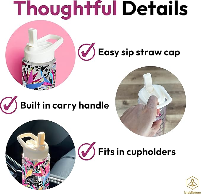 Biddlebee 32oz. Hydration Tracker Water Bottles with Times To Drink | Big Motivational Water Bottle with Time Marker, Straw Lid, & Measurements | BPA-Free