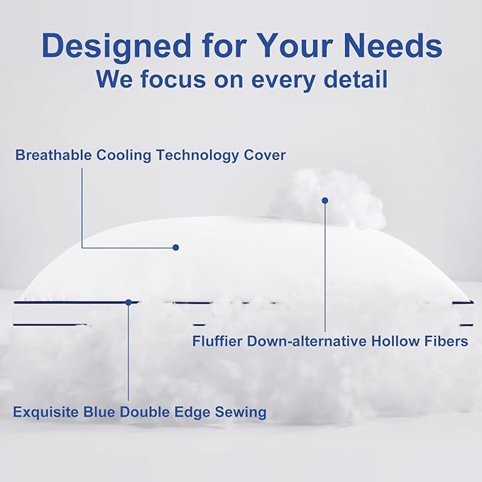 - ✅【Soft and Breathable Material】The pillows are made of premium 3D+7D breathable microfiber material, which has better ventilation and heat dissipation and prevents you from overheating during sleep. The sleeping surface of the pillows are smooth and skin-friendly, creating a relaxed and comfortable sleeping environment.