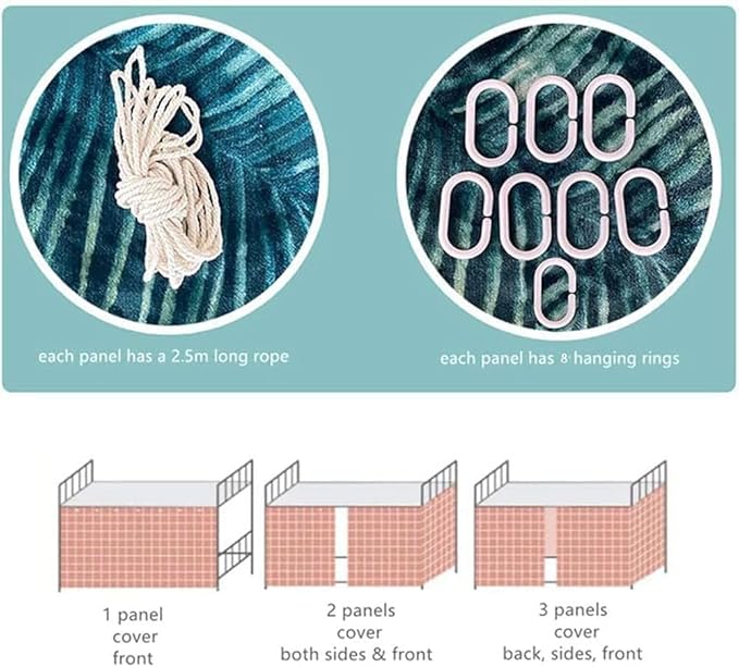 - 【Package including】Package includes: 2 Pieces bed curtain , 7 Hanging Rings and 98.4 inches/2.5M Rope.Tips: Pictures for reference only. No top cloth included.