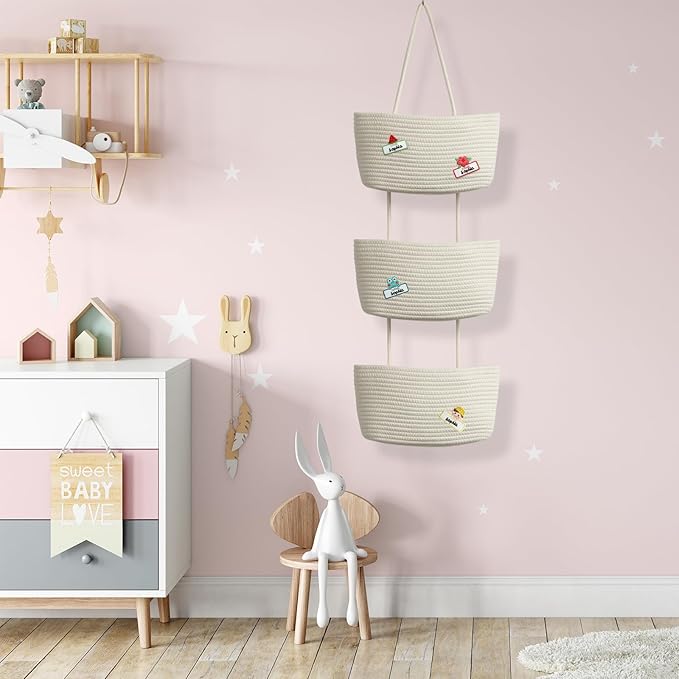- Premium Material: These nursery hanging baskets are made of 100% natural cotton, skin-friendly. Strictly selected cotton thread, solid and durable, add bricks and tiles to your quality life. Time flies, and these hanging baskets are still perfect as new