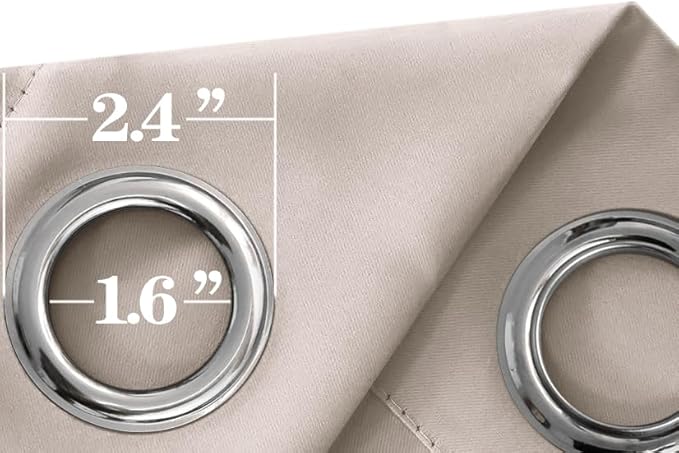 - EASY CARE & PACKAGE : Curtain Set includes 1 pair - 2 pack blackout curtain panels of 52" wide by 84" drop with 8 silver grommets top. Thick curtains without liner yet feels heavy enough and soft.Wrinkle free.The eyelet ring (1.6-inch inner diameter) fits easily with standard curtain rods.Machine washable in gentle cycle and cold water.Do not bleach.Warm iron and tumble dry low.Return within 30 days if not fully satisfied.
