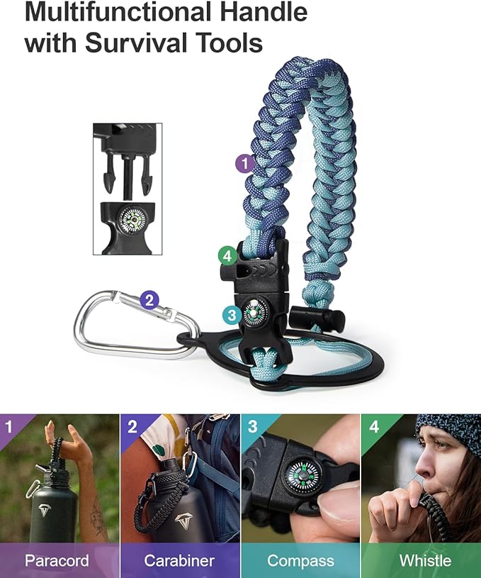 - Everything You Need: The package includes a comprehensive accessory set:Topre 64oz/128oz Water Bottle,two lids, a paracord handle, a carrying pouch, two straws and a straw brush.