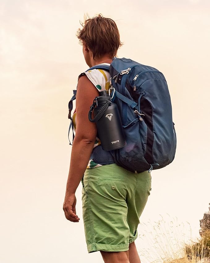 - Cold for 48H & Hot for 24H:Topre 64 oz Half Gallon Insulated Water Bottle features advanced double-wall vacuum insulation with copper plating, the water flask preserve the freshness and temperature of your drinks throughout the day.