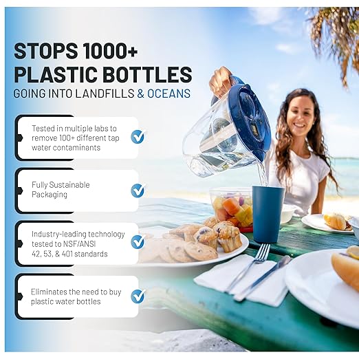 - Safety Focused: Designed to specifically target PFAS, also known as forever chemicals. Our pitcher is rigorously tested to remove microplastics, chlorine, heavy metals, and other impurities, offering a safe and reliable hydration source.
