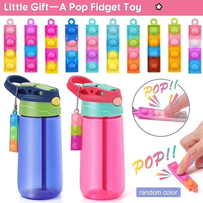 Kids Water Bottle for School 16 OZ Water Bottle with Straw BPA-Free Reusable Leak-proof Water Bottles with One-handed Opening Straw Lids, Anti-dust Spout Cover (PINK)