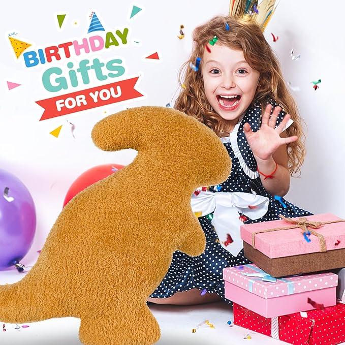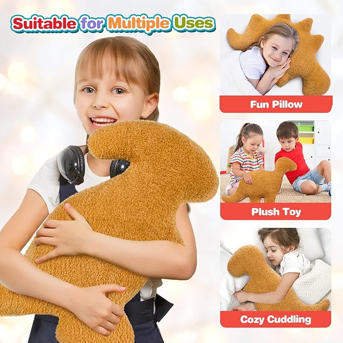 - Dino Chicken Nugget Pillow: Adorably cute and soft with added nostalgia from childhood dinners. You will love showing your family or friends and immediately seeing their smiles of surprise and delight. The whimsical decor addition will have everyone wanting one. This is a cute plush that makes a great gift for teen girls, teen boys, boyfriends, girlfriends, brothers, sisters, men, women.
