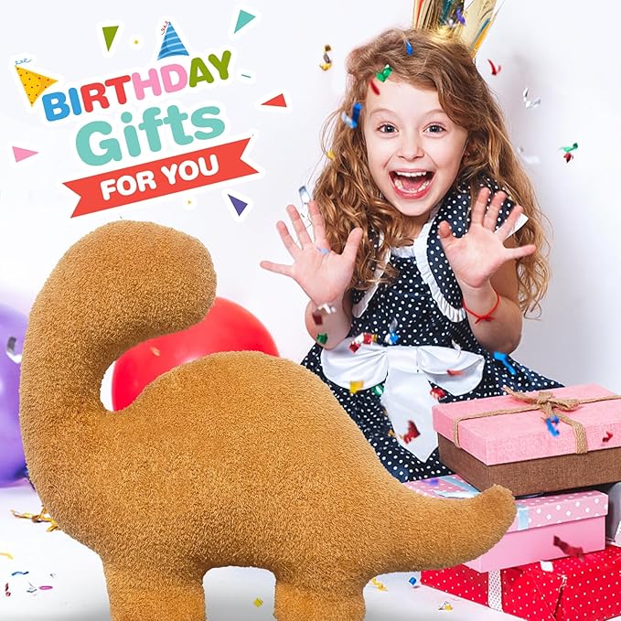 - 24 Inches Large Size Brontosaurus Pillow: This realistic dino nugget pillow is a funny gift for a child or adult who is fond of the classic dino nuggets in your life. Large dinosaur pillow also makes a cool dinosaur gift for someone who is a fan of dinos, nuggets, or pillows! This fun plush pillow would be a great birthday gift, Christmas gift, Valentine's Day gifts, Easter, Halloween gifts and dinosaur themed party decorations.