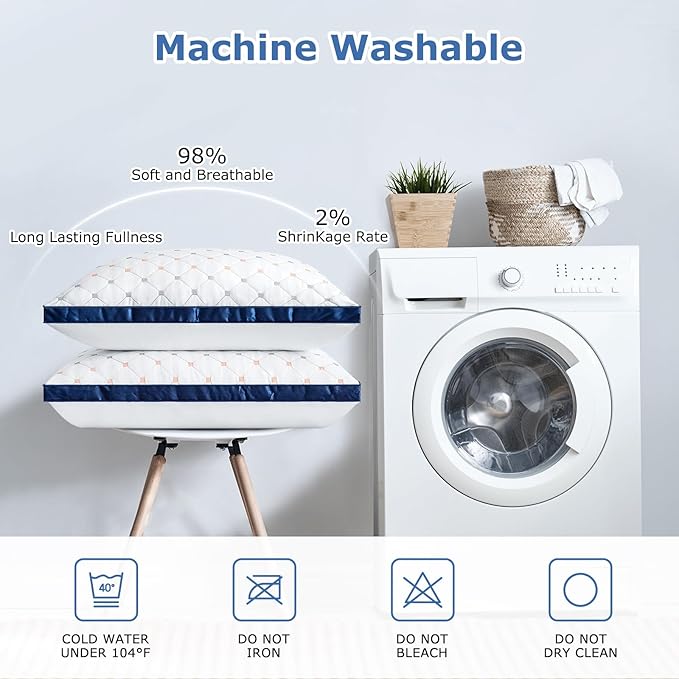 - Warm Tips and After-sale Service: our 2 pack pillows for sleeping come with vacuum sealed. Please air out for 24-72 hours for full fluffing and to dissipate odors. Machine washable pillows are easy to care. If you have any question, please do not hesitate to let us know. We will spare no effort to assist you solve any problem