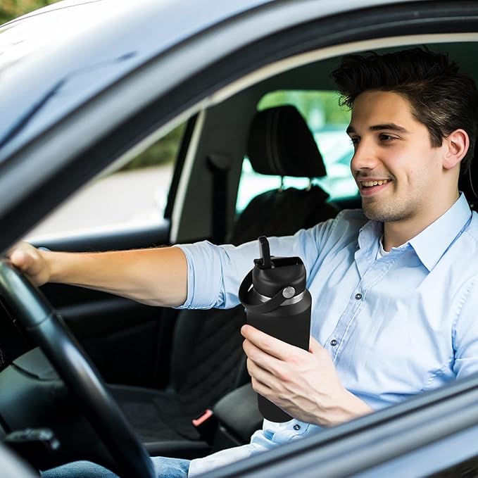 - PREMIUM MATERIAL】This insulated water bottle is made of 18/8 food-grade stainless steel with double-walled,it is 100% BPA free. It will never leave a metal taste or rust. Safe from oxidation and flavor transfer. And the powder coating exterior finish ensures a better grip, and its wide-mouth opening makes your ice or fruits filling and cleaning easily and conveniently