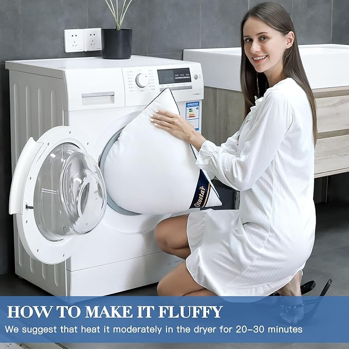 - FLUFFING INSTRUCTIONS: 1.We recommend that you use a dryer,it will fluff up the pillow more quickly. (Shake vigorously and massage evenly the pillow will also help to make it fluffier.) 2.Open the plastic wrap and remove the pillows; Press the pillows vigorously; Squeeze the pillows vigorously; Fold the pillows vigorously; Wait 24-48 hours. Once fully loft, use the pillows as desired