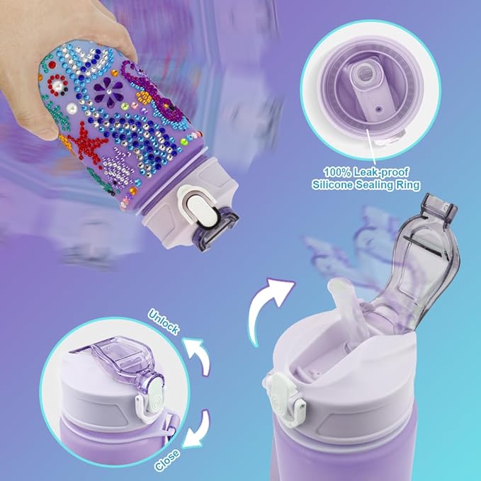 - DIY Craft Kits: Our fun DIY arts and crafts kits include a 700 ml water bottle x1, an easy-to-carry lanyard x1, a drinking straw x1, a beautiful gift box x1, and colorful gemstone stickers x6.