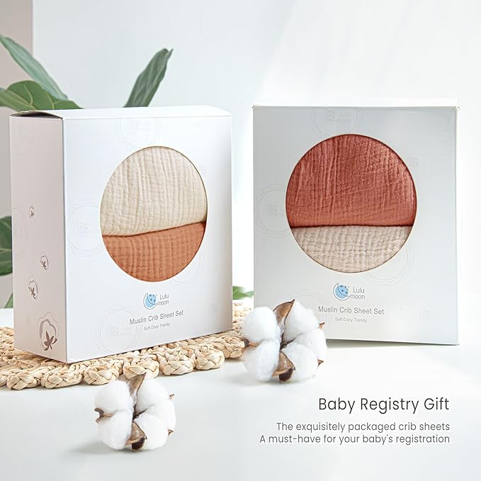 Lulu moon Muslin Crib Sheets - Fitted Crib Mattress Sheets for Boys and Girl - 28"x 52", 2 Pack