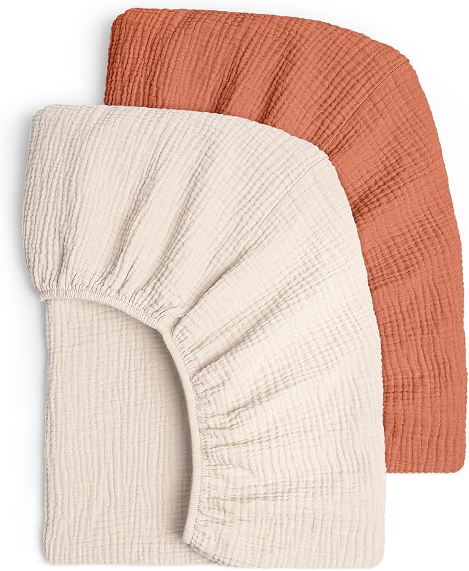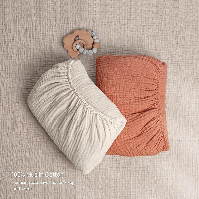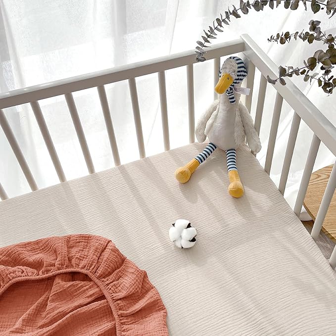 - SOFT AND COMFORTABLE - The crib sheets is made of 100% muslin cotton, super soft, comfortable, and won't irritate your baby's delicate skin. Lightweight, breathable muslin crib sheets stay cool even in warm weather.