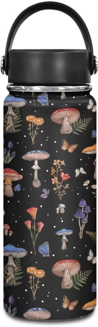 Mushroom Print Insulated Stainless Steel Water Bottle with Top Handle 20 Oz Vacuum Stainless Steel Sports Travel Water Bottle for Women Men