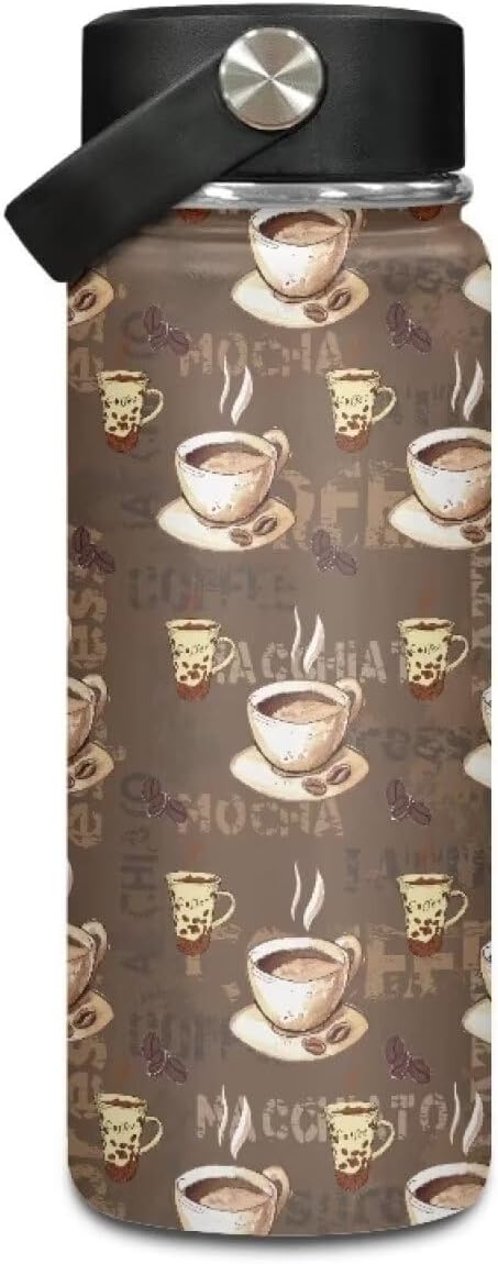 Coffee Insulated Water Bottle 20 oz Stainless Steel Water Bottles for Travelling, Camping, Cycling Water Bottle Vacuum Insulated Cup Reusable Water Bottle