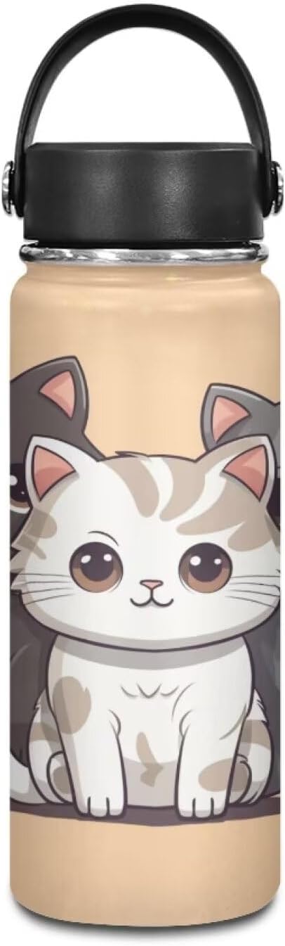 Cat Insulated Water Bottle with Handle Stainless Steel Water Bottle 20 Oz Travel Cup Reusable for Travel Camping Hiking Bike Sports Gym & Office