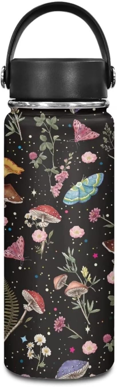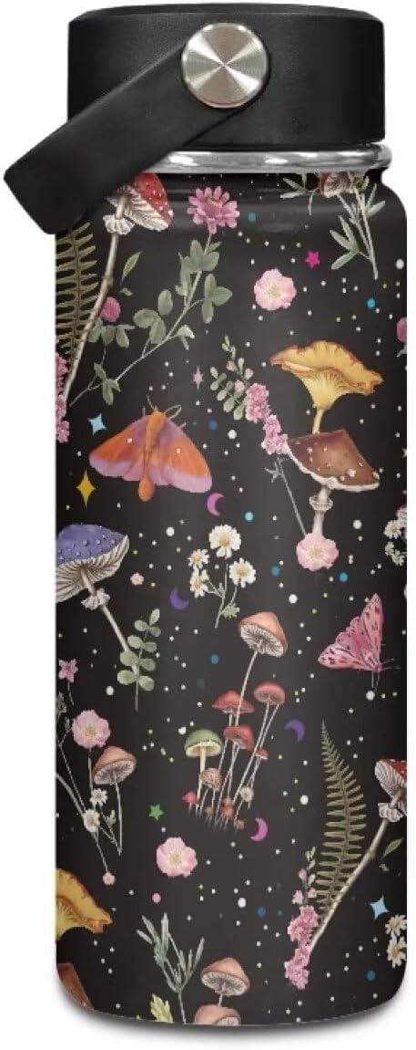 Wild Mushoom Water Bottle 20 Oz for Women Insulated Water Bottles with Handle Flask Wide Mouth Bottle Vacuum Stainless Steel Metal Water Bottle
