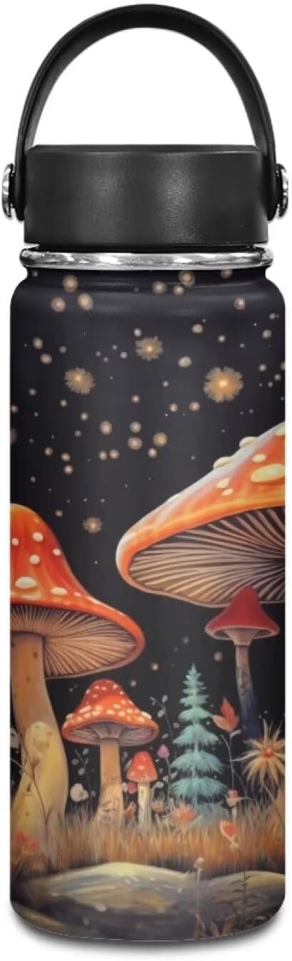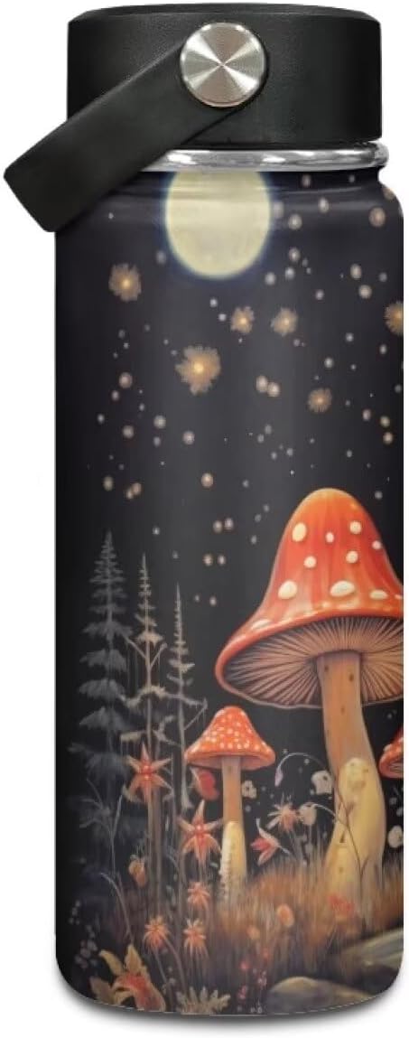 Mushroom Insulated Water Bottle for Women Men 20 Oz Vacuum Water Bottle for Hot & Cold Drinks, Wide Mouth, Great for Travel, Hiking & Camping