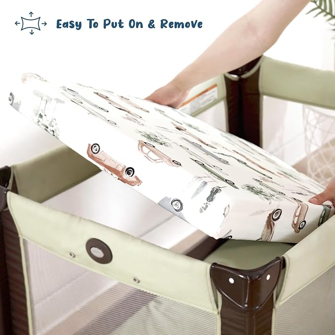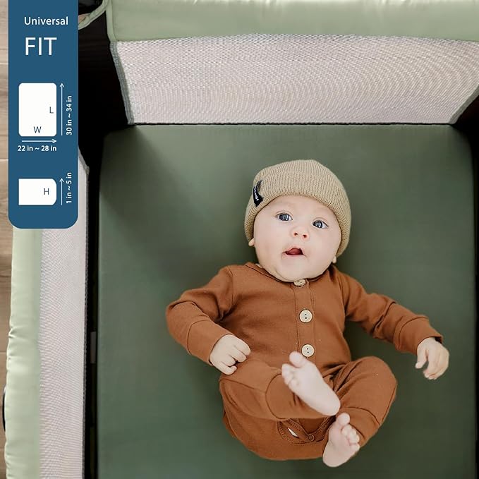 - Ultra Soft & 4-way Stretch: Made of high quality soft stretchy jersey knit fabric. GRSSDER mini crib sheets offer a breathable, sweat-absorbent tee shirt like feel for exceptional comfort, providing your little ones a safe and to stay in place throughout the day.