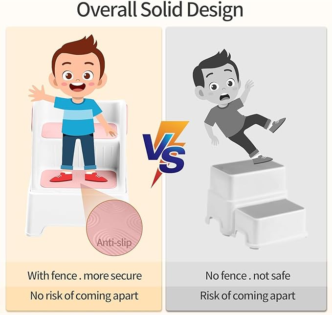 - 【Stable, Anti-slip,Eco-friendly】The well-designed "A" type stable structure, thickened non-slip pads&wider pedals, and easy-to-grip double handles without burrs, allowing your baby to start an independent journey with confidence.Our toddler helper stools are made of non-toxic PE, durable and BPA free.