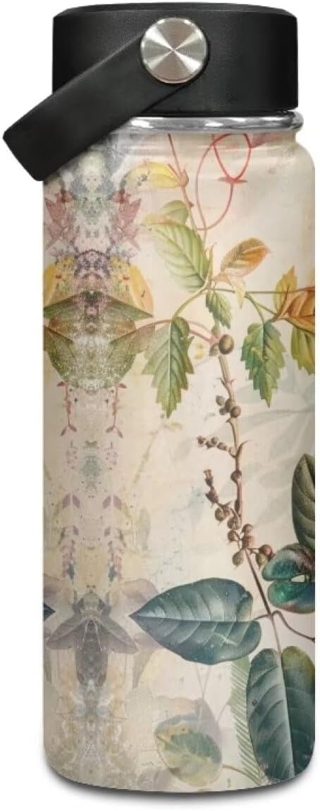 Floral Insulated Water Bottle with Lid -20 Oz Vacuum Stainless Steel Reusable Leak & Sweat Proof Gym Sports Travel Water Bottle for Women Men