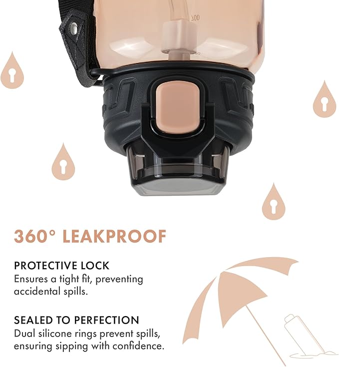 - Lock in Confidence - Bid farewell to spills with the protective lock and dual silicone rings of our Tritan sports bottle. The innovative design ensures a tight fit, preventing accidental spills, providing confidence for focused activities. Perfect kids water bottle for school, gym accessories for men and water bottle for women.