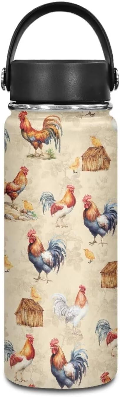 Chicken Insulated Water Bottles with Handle Stainless Steel Metal Water Bottle, Cold & Hot Water Bottle 20 Oz, Leak Proof Travel Cup